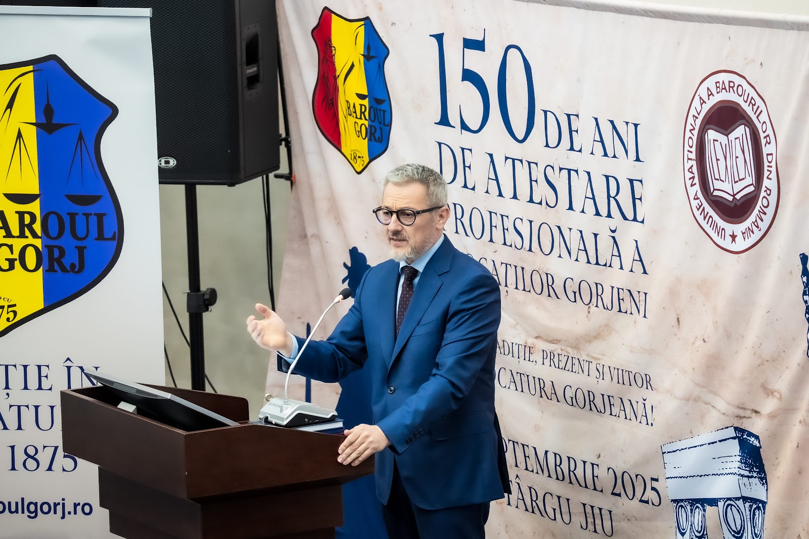 Târgu Jiu, 12 – 13 septembrie 2025 – Baroul Gorj a marcat, cu sprijinul Uniunii Naționale a Barourilor din România (UNBR), 150 de ani de la prima atestare documentară a avocaturii gorjene, printr-un eveniment aniversar desfășurat la Târgu Jiu. Manifestarea a reunit peste 250 de participanți, printre care s-au numărat reprezentanți ai autorităților centrale și locale, ai mediului juridic și universitar, precum și decani ai barourilor din întreaga țară.