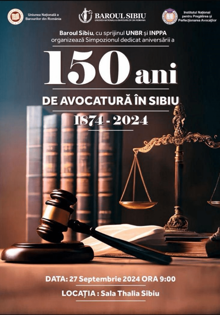 Baroul Sibiu organizează ”Simpozion dedicat aniversării a 150 ani de avocatură în Sibiu: 1874-2024”