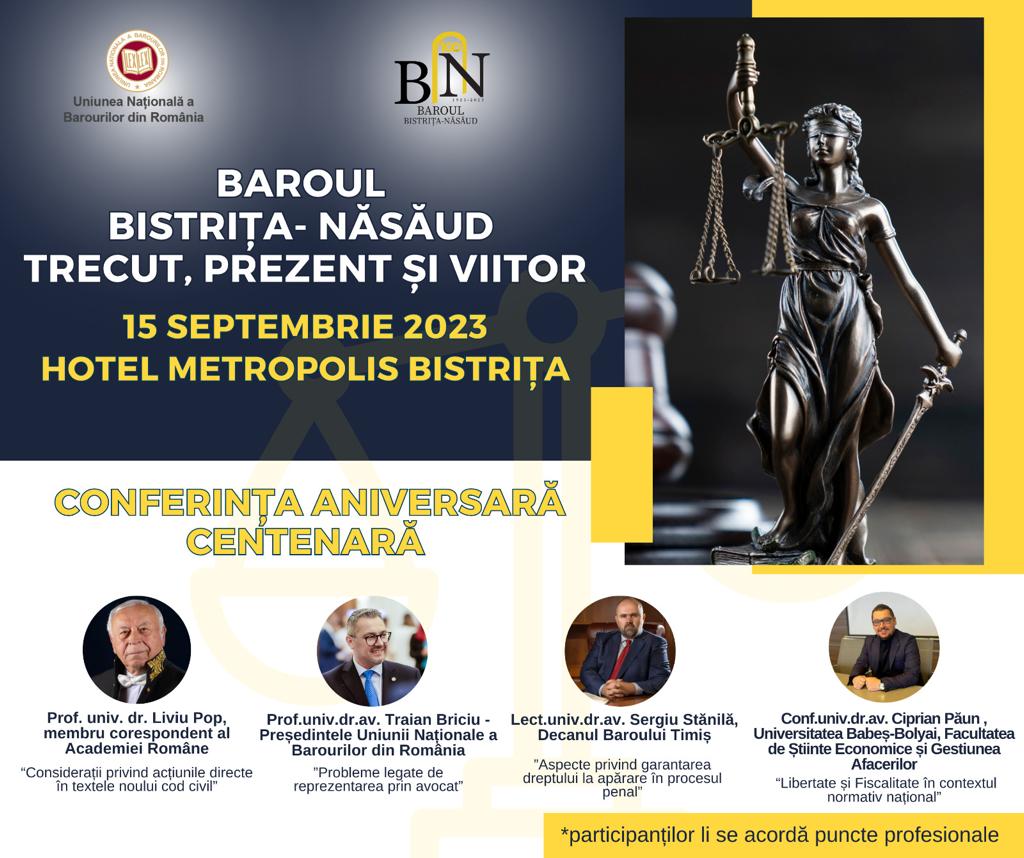 Conferința Aniversară Centenară ”Baroul Bistrița-Năsăud: Trecut, Prezent și Viitor”