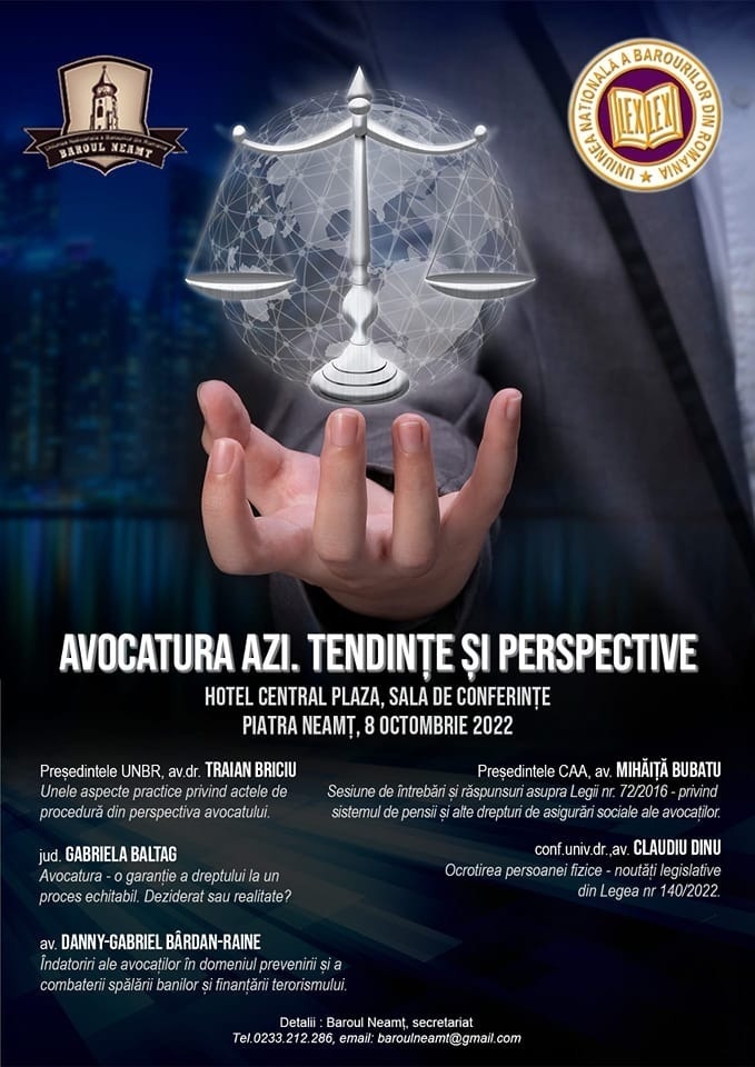 Conferința cu tema ”Avocatura Azi. Tendințe și Perspective”, Baroul Neamț