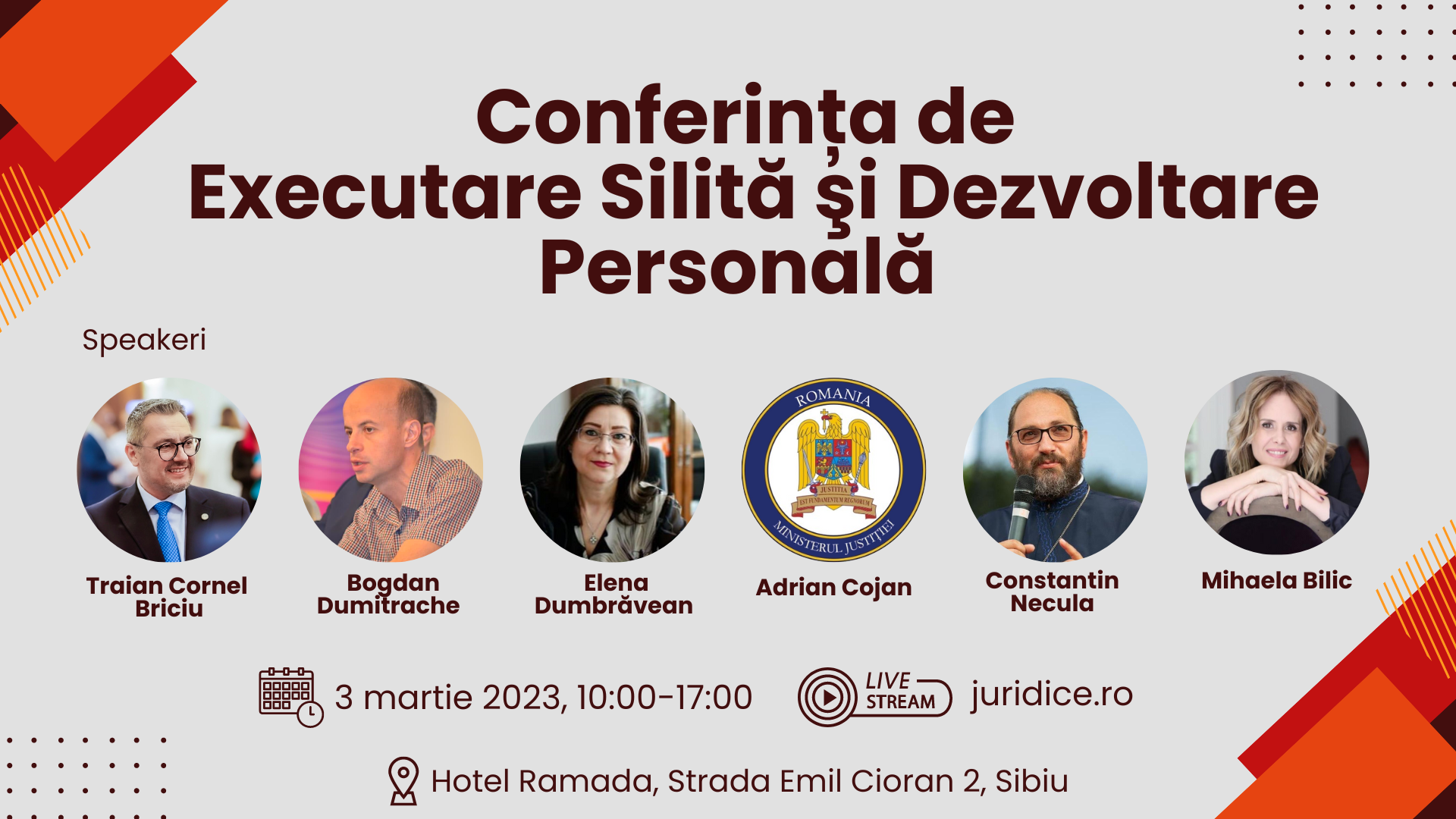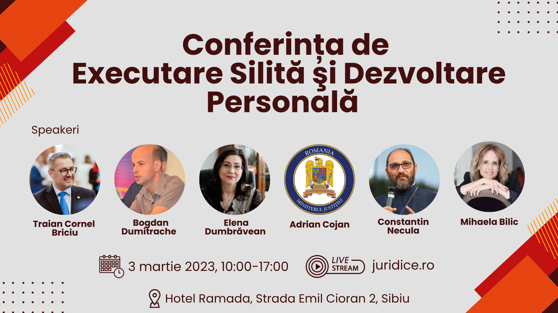 Conferința se transmite LIVE ONLINE gratuit pe @homepage juridice.ro, facebook.com/JURIDICE.ro, facebook.com/groups/juridice și youtube.com/c/videojuridice.