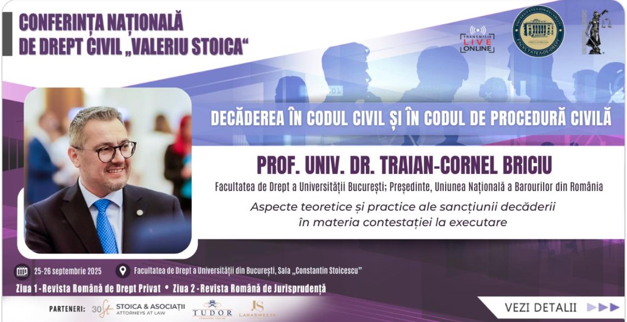 25-26 septembrie - 25 - 26 septembrie 2025, Facultatea de Drept a Universității din București, Sala Constantin Stoicescu