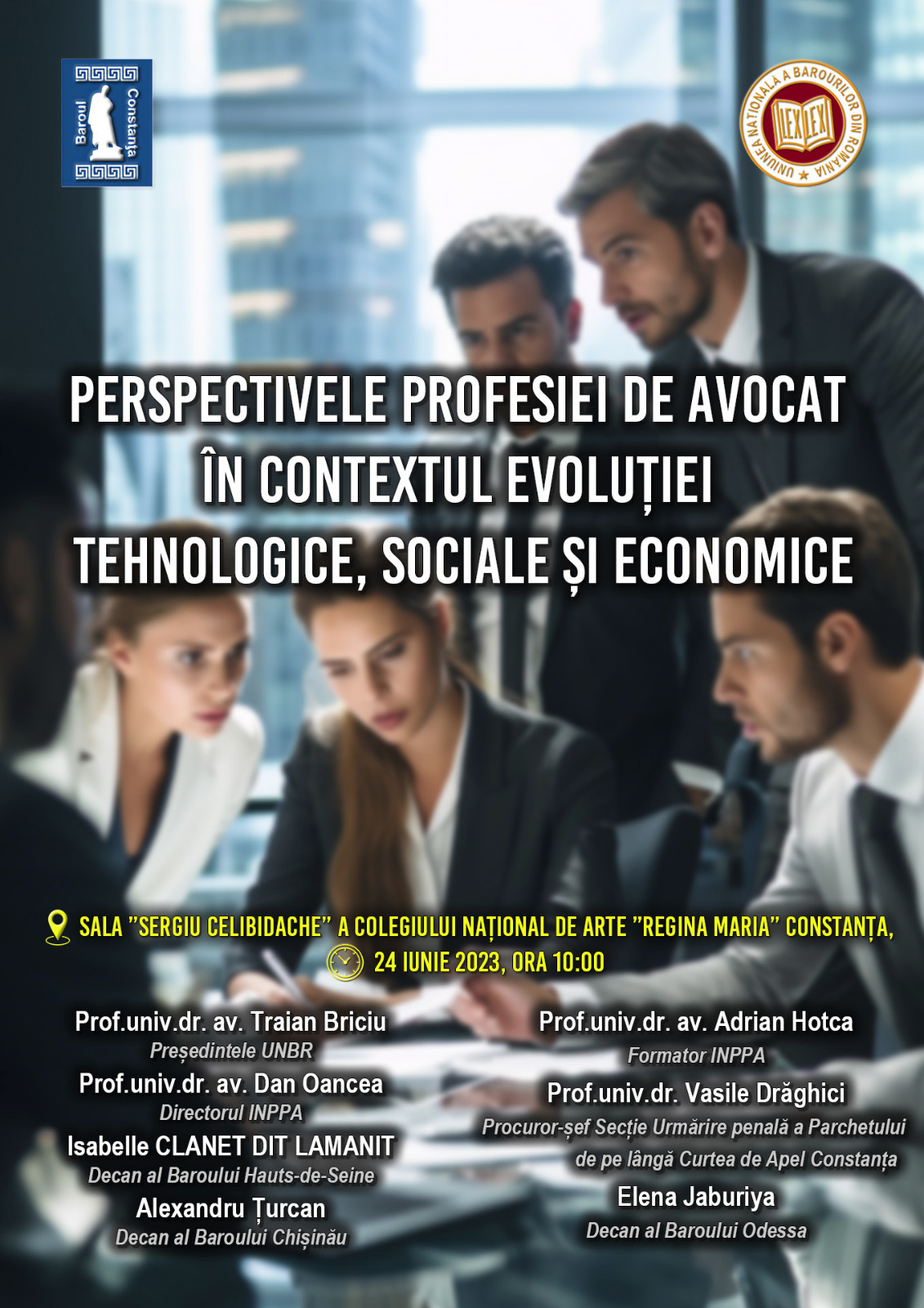 Conferința internațională de pregătire profesională cu tema „Perspectivele profesiei de avocat în contextul evoluției tehnologice, sociale și economice” organizată de Baroul Constanța împreună cu UNBR și INPPA
