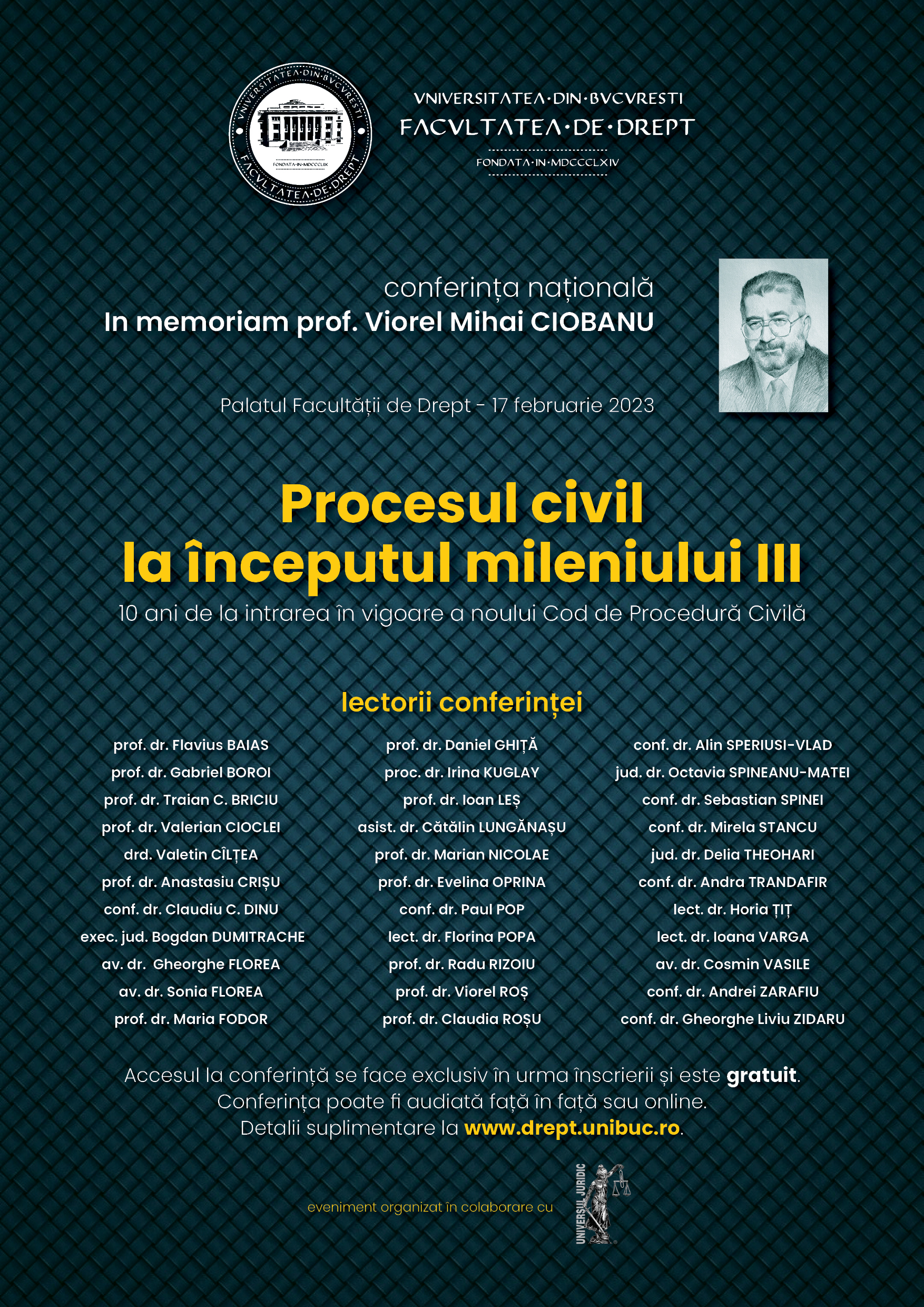 Conferința națională In memoriam prof. Viorel Mihai CIOBANU: ”Procesul civil la începutul mileniului III”