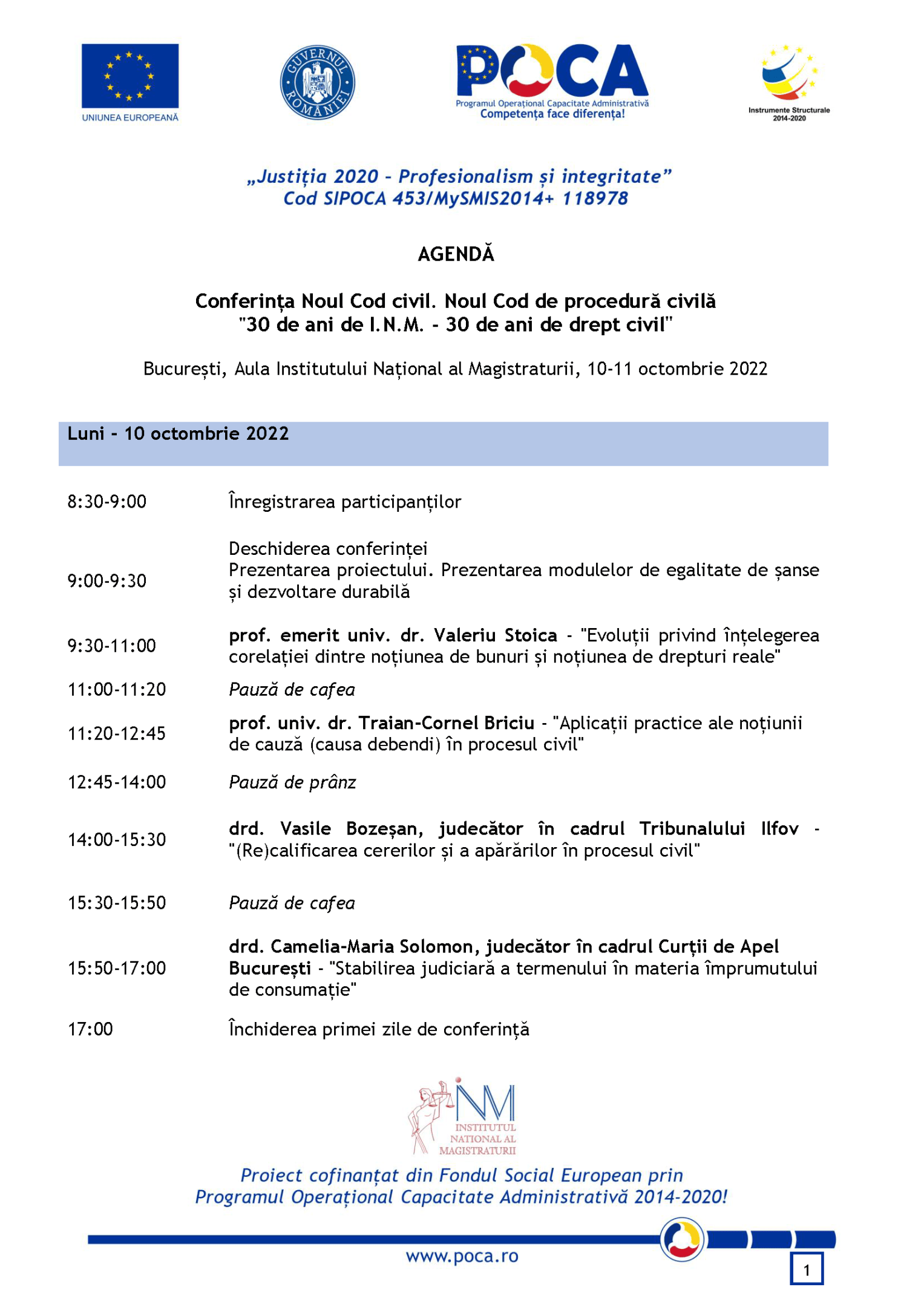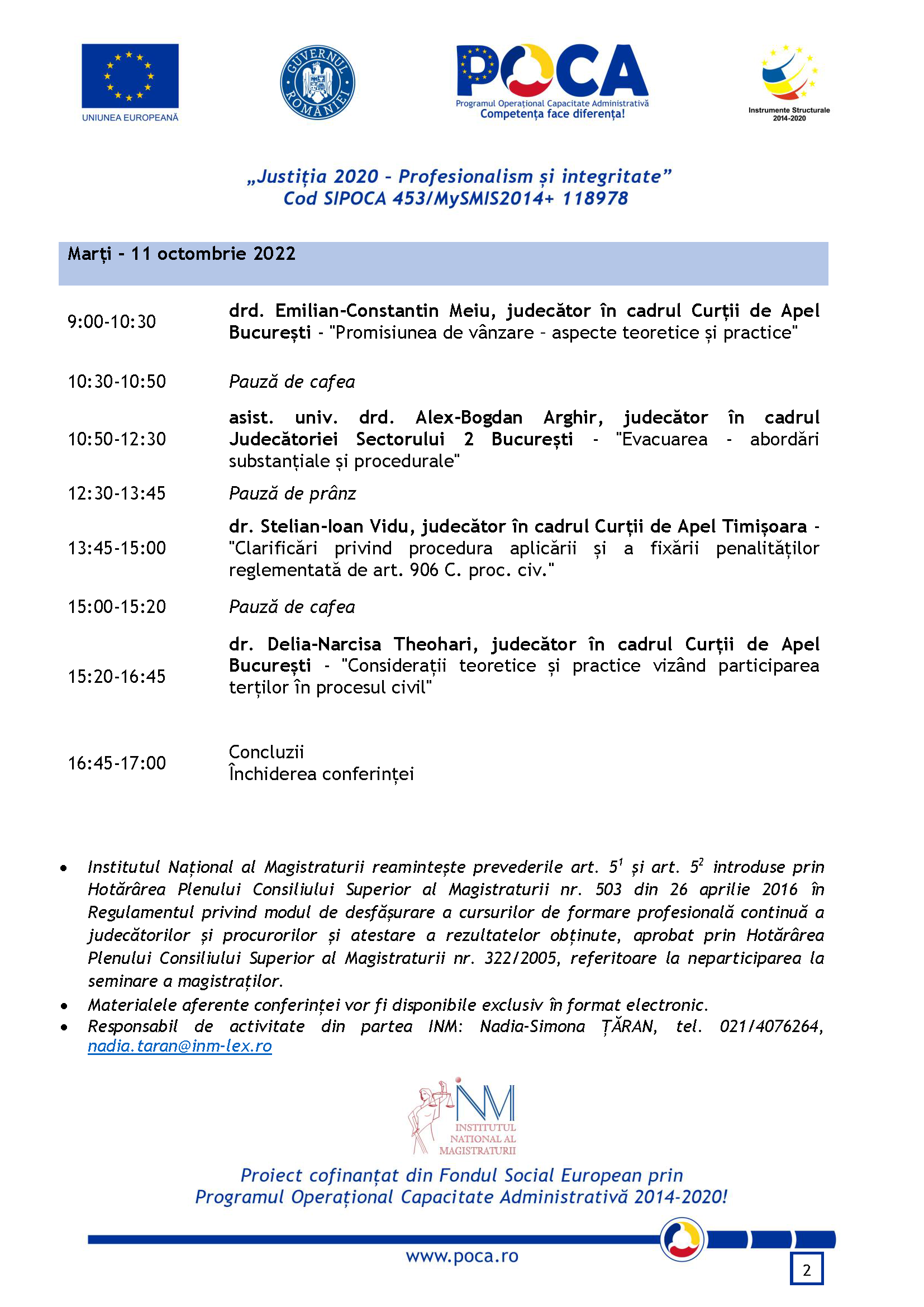 10-11 octombrie - București, Aula Institutului Național al Magistraturii, 10-11 octombrie 2022