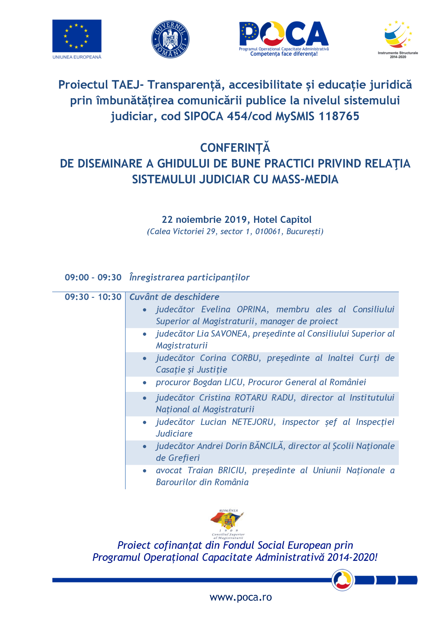 Conferința pentru diseminarea Ghidului de bune practici privind relaţia sistemului judiciar cu mass-media organizată de Consiliul Superior al Magistraturii
