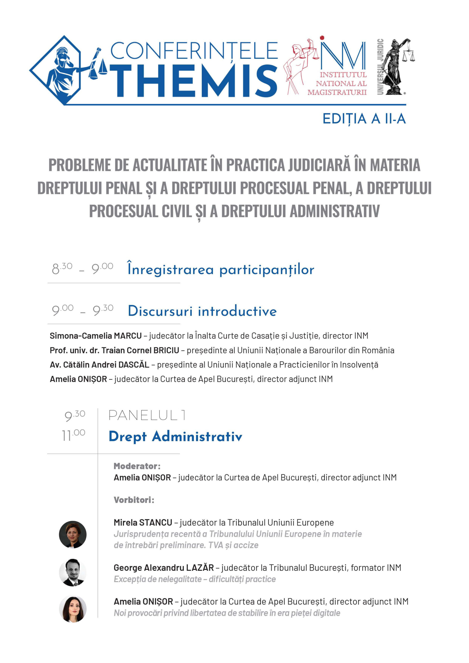 CONFERINŢELE THEMIS, EDIȚIA A II-A. Probleme de actualitate în practica judiciară în materia dreptului penal și a dreptului procesual penal, a dreptului procesual civil și a dreptului administrativ