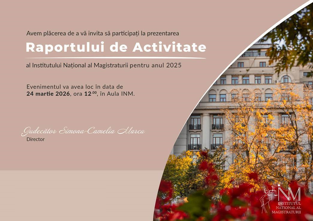 Invitație la prezentarea Raportului de Activitate al Institutului Național al Magistraturii pentru anul 2025