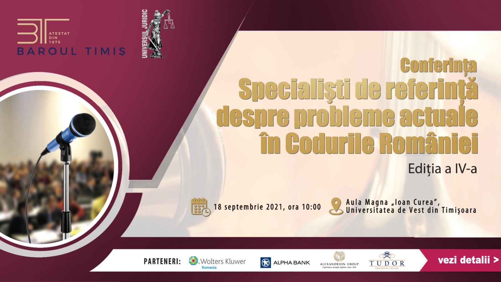 organizează a IV-a ediție a Conferinței „Specialiști de referință despre probleme actuale în codurile României”.