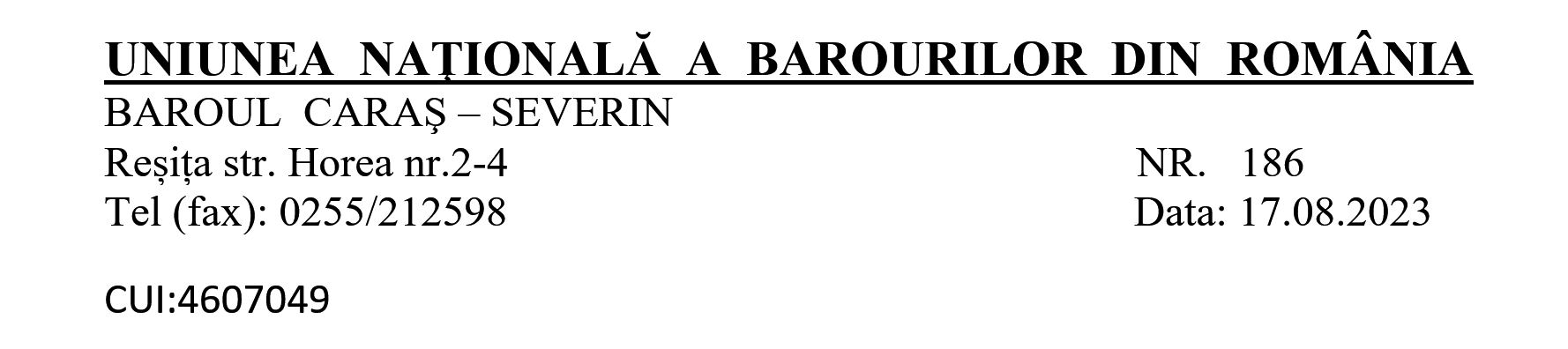 Consiliul Baroului Caraș-Severin întrunit în ședința extraordinară din data de 17.08.2023, în interesul avocaților din județul Caraș-Severin, își manifestă îngrijorarea și dezaprobă măsura fiscală privind impunerea de către Guvernul României a unei cote de contribuție de CASS în sistem real neplafonat, asupra veniturilor profesiilor liberale.