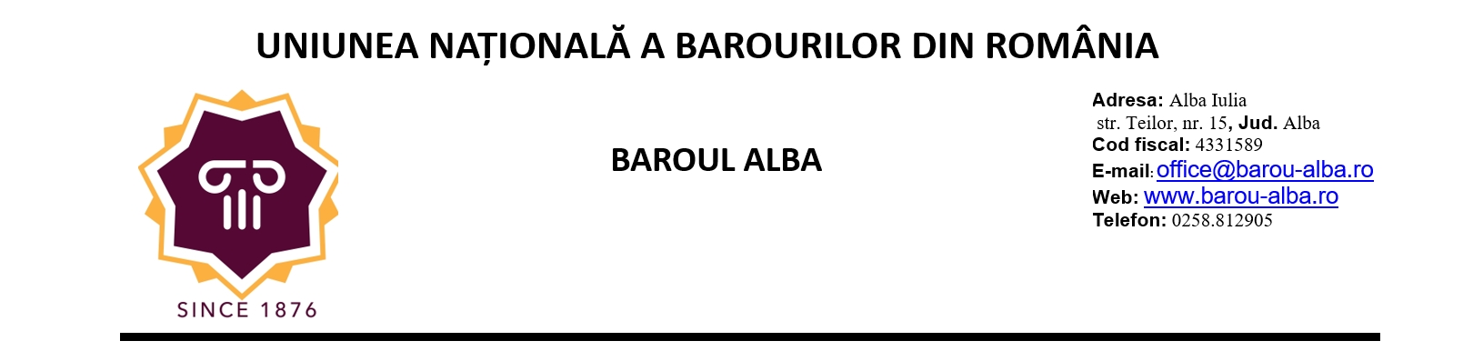 Baroul Alba, alături Uniunea Națională a Barourilor din România și celelalte barouri din țară, manifestă deplină deschidere la un dialog instituțional și solicită în mod imperativ Guvernului României să nu adopte proiectul de act normativ vădit discriminatoriu.