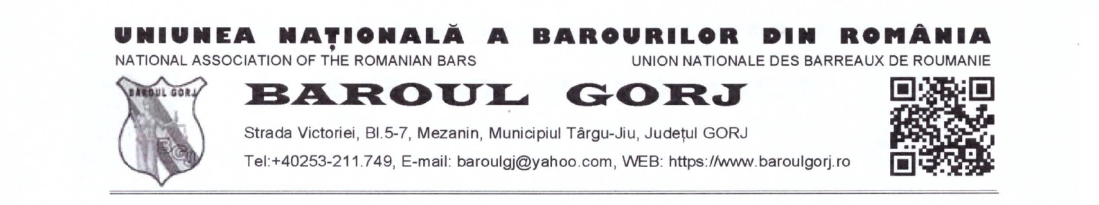 Consiliul Baroului Gorj, întrunit în ședință de urgență în data de 14 august 2023, a analizat proiectul de Ordonanță al Guvernului pentru modificarea și completarea Legii nr. 227/2015 privind Codul fiscal și alte măsuri financiar-fiscale, exprimându-și îngrijorarea și nemulțumirea față de intenția Guvernului României de a dubla practic cota CASS în ceea ce privește profesia de avocat, susținând astfel poziția exprimată de UNBR pe această temă.