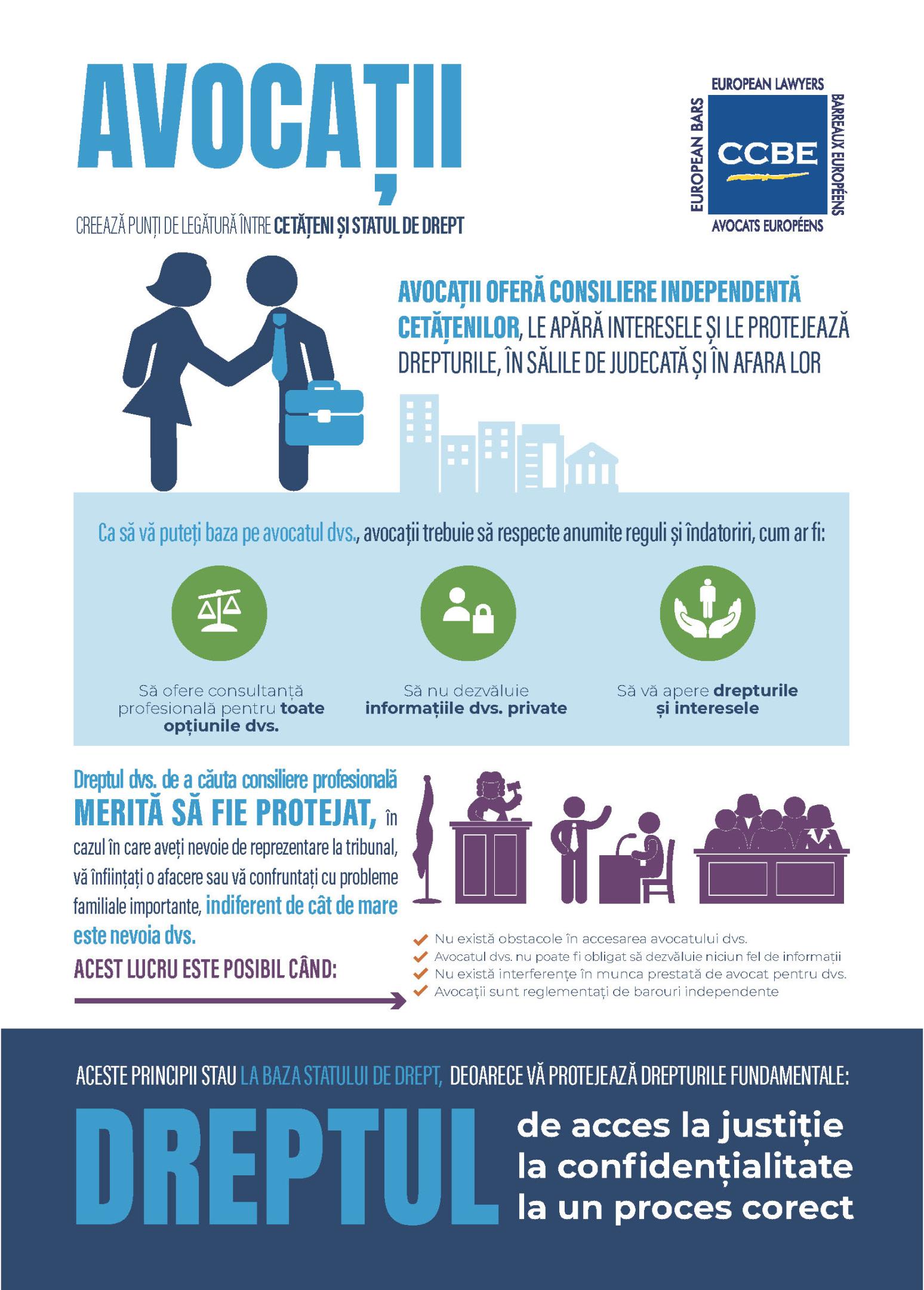 Dăm publicității posterul conceput de CCBE în cadrul campaniei de promovare a profesiei de avocat în spațiul european.