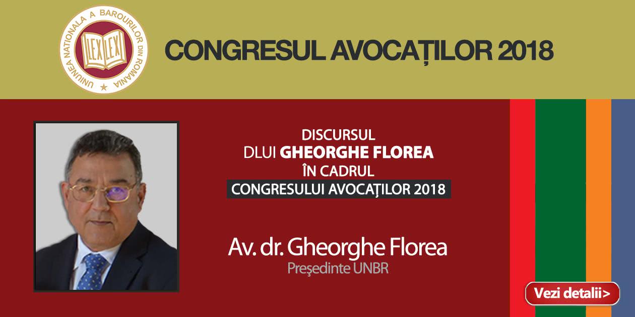 Iată mesajul pe care îl transmit, în numele Consiliului UNBR, el este un mesaj înscris în toate documentele congresului, este mesajul pe care am ținut să-l transmit la deschiderea festivă a congresului, având această posibilitate, de a fi martori și eroi a unui congres al avocaților la 100 de ani de la Marea Unire, în condițiile în care, repet ce am și scris, că prima lege, unificatoare, a celor patru provincii alipite după marea adunare națională de la 1 Decembrie 1918, a fost Legea de Unificare a Corpului de Avocați din 1923, rezultatul unor dezbateri serioase într-o profesie de avocat care și-a propus și atunci, și care ne transmite încă de atunci ideea că este nevoie de unitate și solidaritate în corpul de avocați, de onestitate și corectitudine, de un singur jurământ, al tuturor celor care sunt avocați, jurământul de a servi dreptatea, adevărul, valorile fundamentale ale celor pe care îi sfătuim, îi apărăm, îi reprezentăm sau le explicăm care este regula legală în raport de care reușim să dăinuim pe aceste meleaguri.