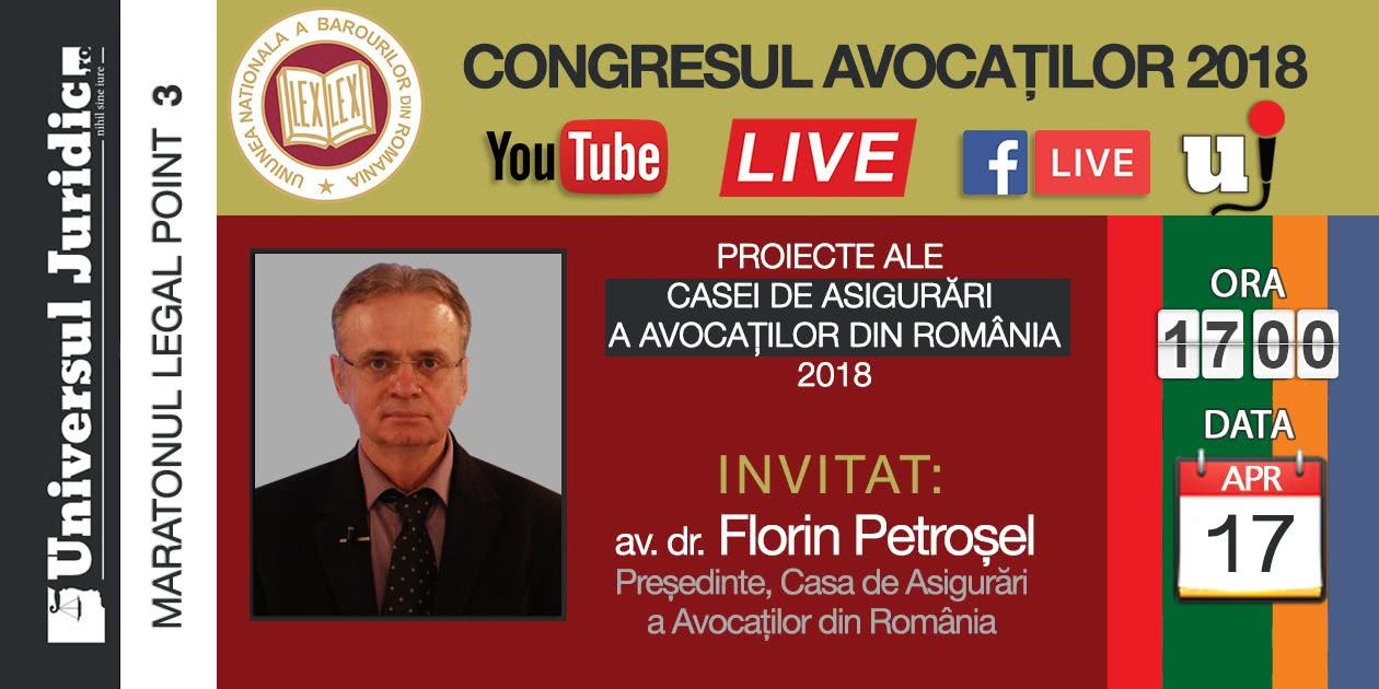 Marți, 17 aprilie 2018, ora 17:00, va avea loc a doua emisiune TV „Legal Point” din seria „Maratonul Legal Point 3”, pe canalul „UJ-TV”, găzduit de portalul universuljuridic.ro.