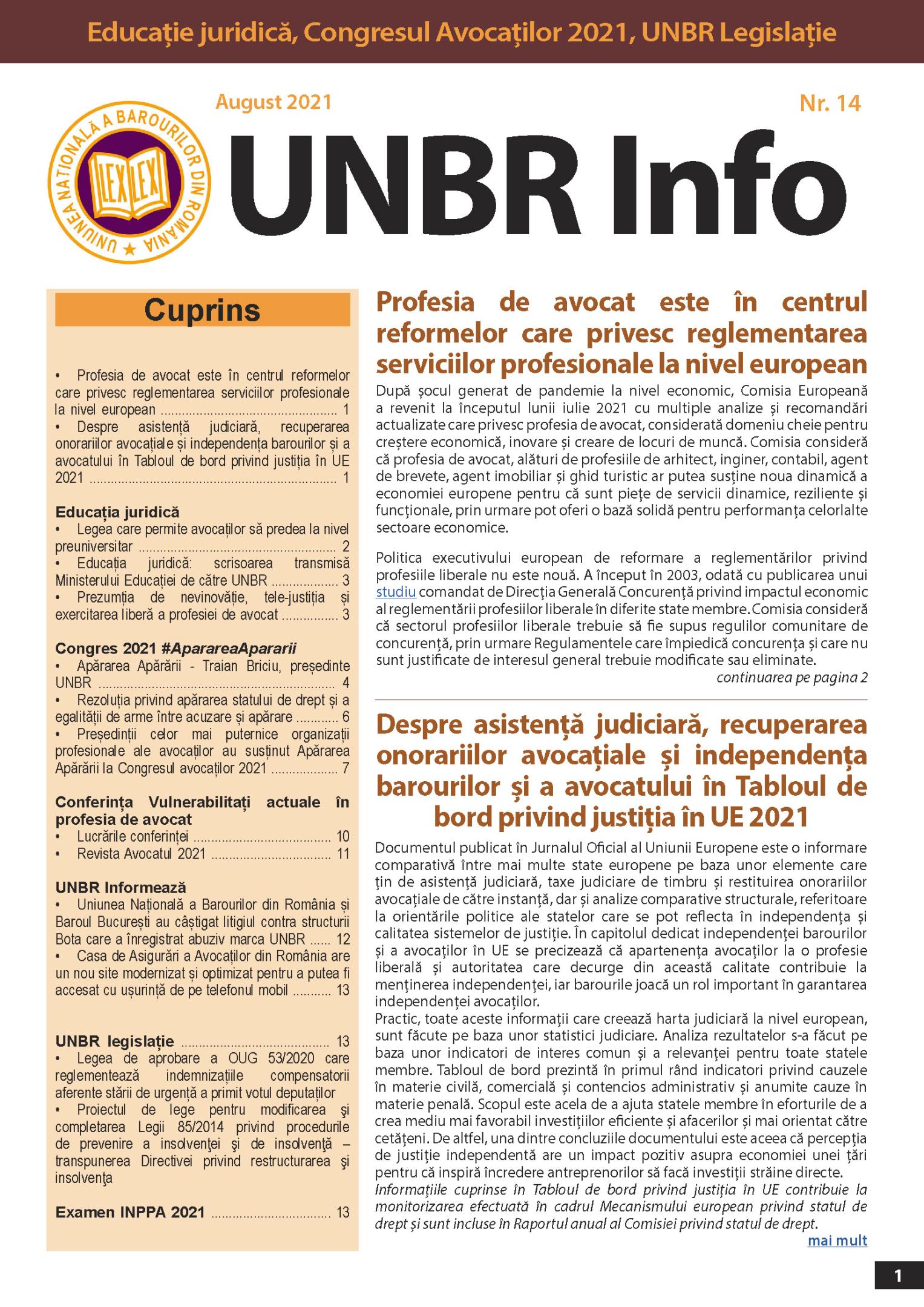• Consiliul U.N.B.R.