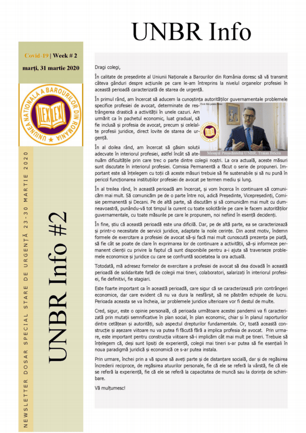 Newsletter 31 martie 2020