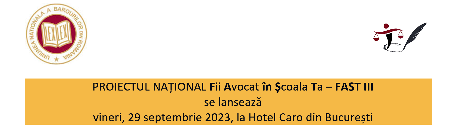 În 2023, UNBR și barourile lansează noi acțiuni FAST prin care vor fi abordate cele mai recente probleme din școlile românești, într-o modalitate care să le permită tinerilor să conștientizeze rolul esențial pe care educația juridică și democratică le au în formarea lor ca viitori cetățeni.