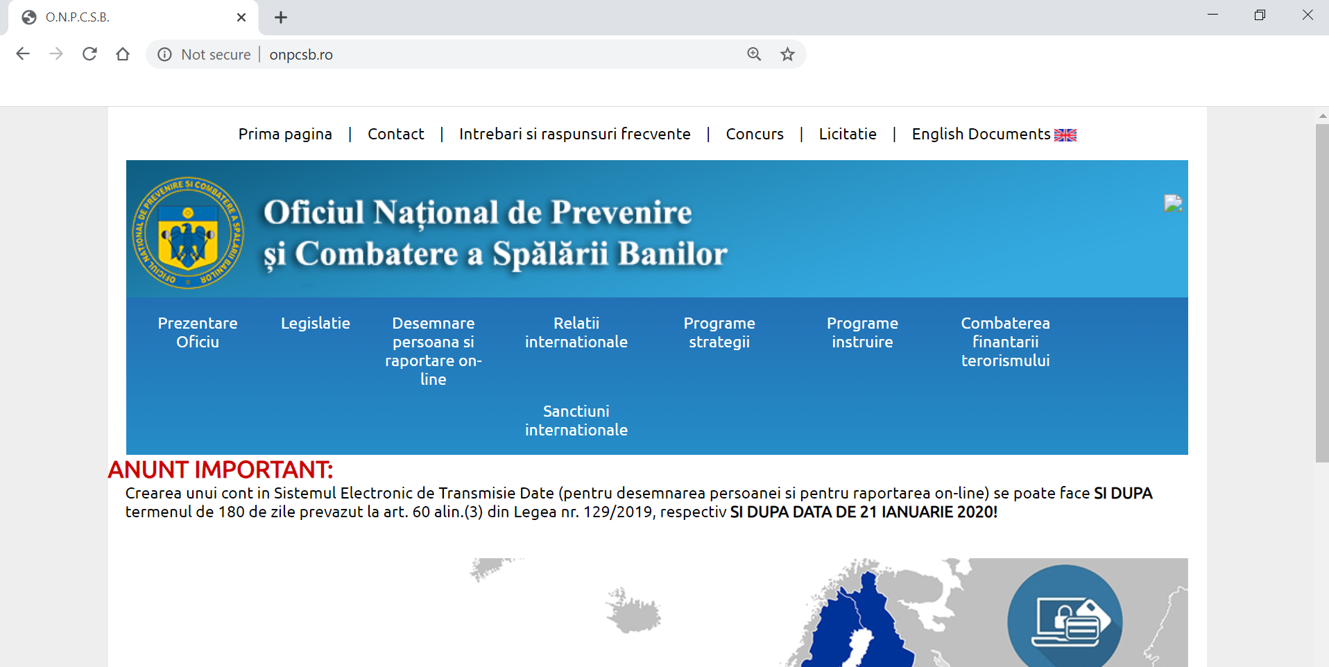 ”ANUNT IMPORTANT: Crearea unui cont in Sistemul Electronic de Transmisie Date (pentru desemnarea persoanei si pentru raportarea on-line) se poate face SI DUPA termenul de 180 de zile prevazut la art. 60 alin.(3) din Legea nr. 129/2019, respectiv SI DUPA DATA DE 21 IANUARIE 2020!”