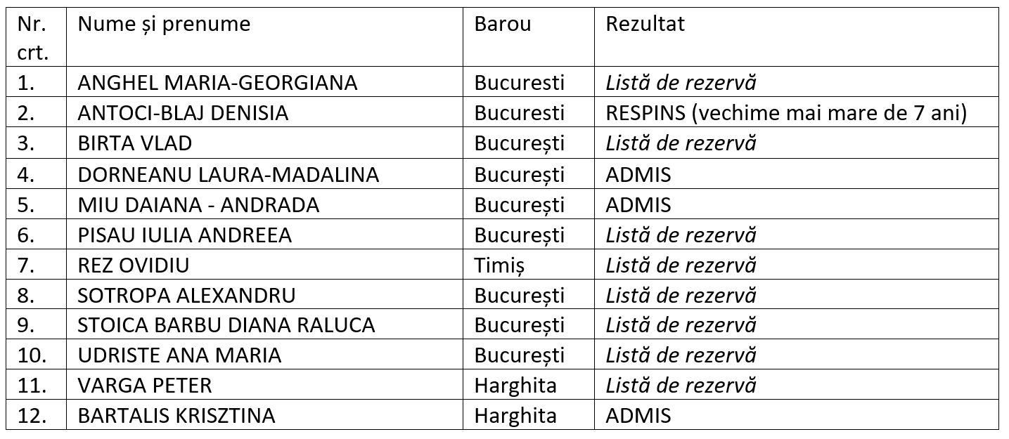 Au fost selectați un avocat din Baroul Harghita și doi avocați din Baroul București.
