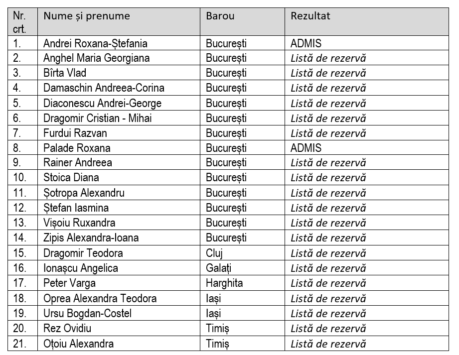 Publicăm rezultatul selecției efectuate în cadrul proiectului LawyerEx, ca urmare a anunțului privind selecția participanților publicat pe site www.unbr.ro la data de 16 ianuarie 2020