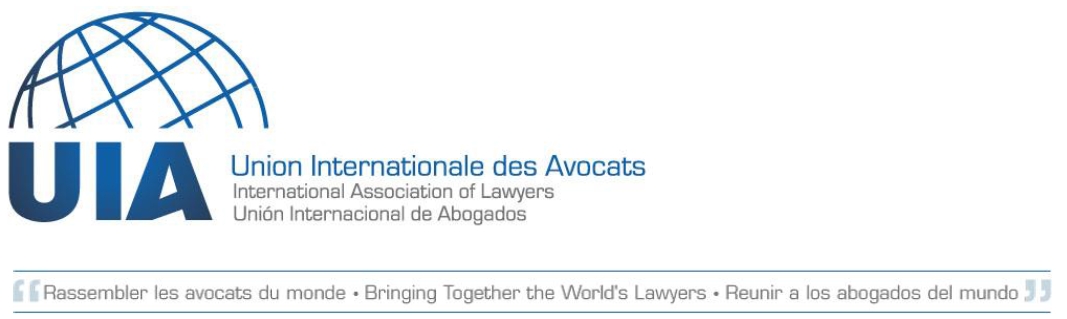 După cum știți, una dintre principalele preocupări ale Uniunii Internaționale a Avocaților este aceea de a apăra apărarea oriunde aceasta este amenințată. În acest scop, noi am creat o echipă de profesioniști specializați care, în cadrul Institutului nostru pentru Statul de Drept (UIA-IROL), studiază diferite dosare care le-au fost prezentate și, în cazul în care se constată o încălcare, chiar și numai ca urmare a unei serii de indicii, aplică măsurile corespunzătoare pentru sprijinirea, pe lângă autoritățile și omologii lor, a avocaților urmăriți, amenințați sau îngrijorați din cauza exercițiului profesiei noastre, reprezentând o adevărată protecție împotriva arbitrariului.