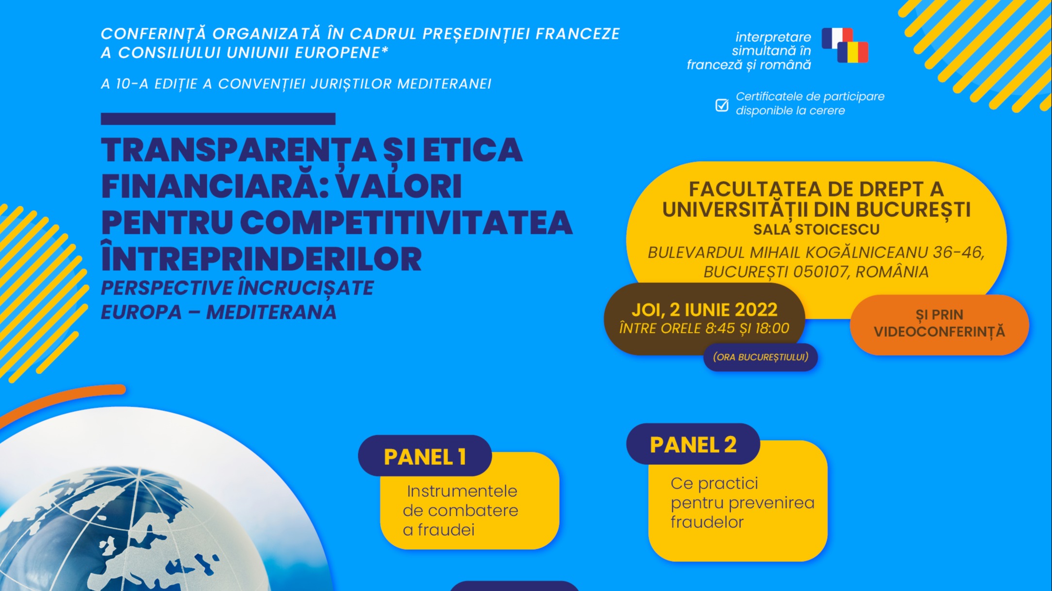 Tema dezbaterilor din acest an este „Transparența și etica financiară: valori pentru competitivitatea întreprinderilor. Perspective încrucișate Europa – Mediterană”. La conferința este asigurată traducere simultană în și din limba franceză.