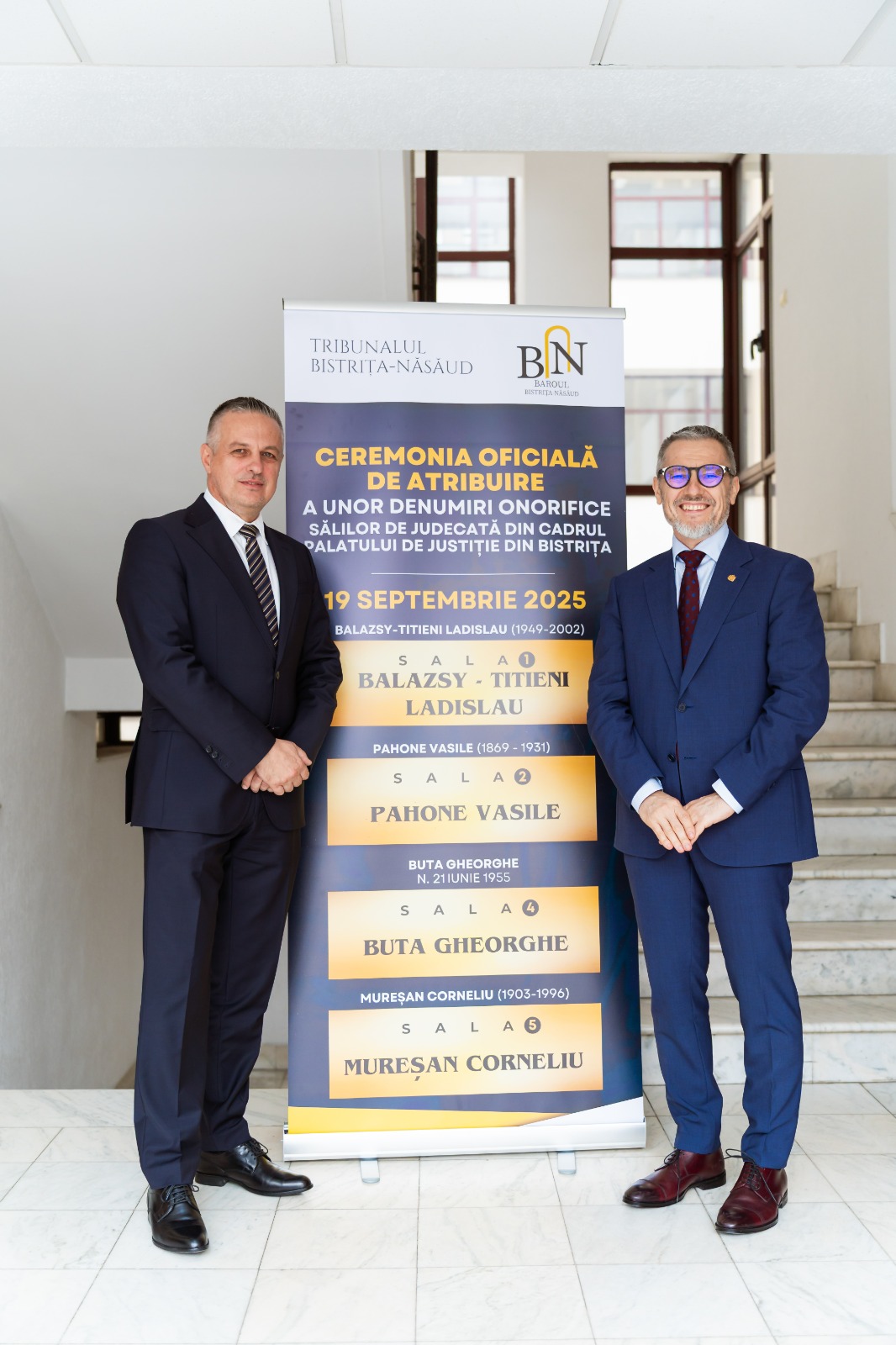 Evenimentul a marcat demararea unui proiect inițiat de Consiliul Baroului Bistrița-Năsăud în colaborare cu Tribunalul Bistrița Năsăud care vizează atribuirea de denumiri sălilor de judecată din Palatul de Justiție Bistrița după numele unor personalități marcante ale avocaturii și ale comunității locale, contribuind la păstrarea memoriei acestora și la întărirea prestigiului actului de justiție.