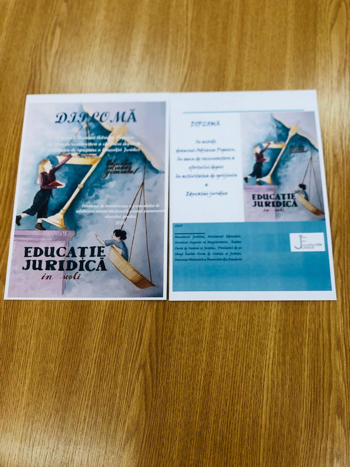 Un moment deosebit al întâlnirii a fost acordarea diplomei de recunoștință doamnei consilier juridic Adriana Popescu, pentru activitățile de educație juridică desfășurate în școlile din București în anul 2024.
