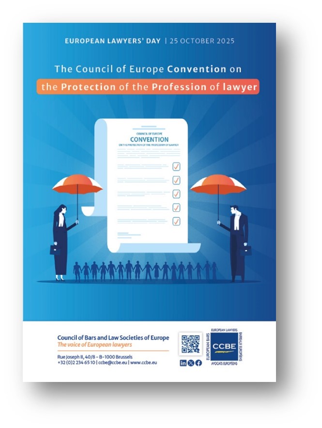 CCBE a selectat tema Convenției Europene privind Protecția profesiei de Avocat pentru Ziua Europeană a Avocaților 2025 cu scopul de a face Convenția larg cunoscută în cadrul profesiei juridice, atât la nivel european, cât și la nivel național. După adoptare, va fi necesar ca aceasta să fie semnată și ratificată de cât mai multe țări.