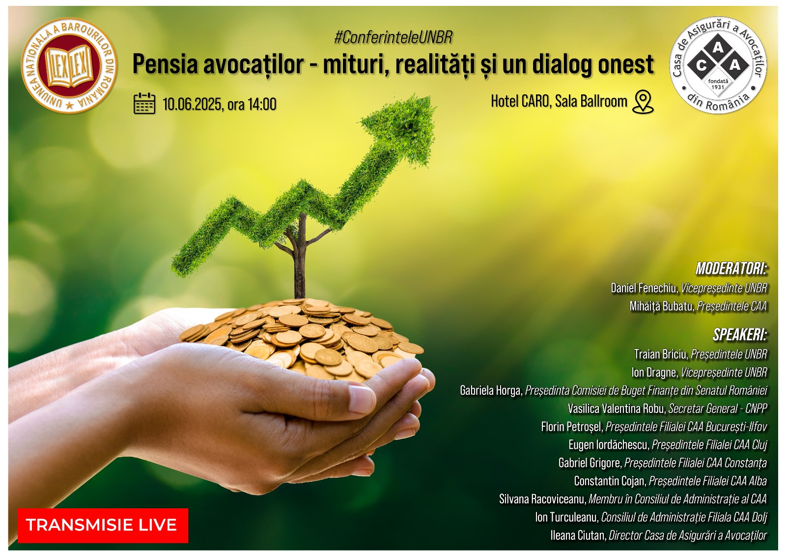Conferința este organizată în cadrul seriei de evenimente „Conferințele UNBR” și își propune să faciliteze o înțelegere corectă, echilibrată și transparentă a sistemului de pensii al avocaților. Vor fi abordate teme esențiale privind funcționarea și sustenabilitatea acestuia, modalitățile de contribuție, drepturile și obligațiile membrilor, precum și percepțiile greșite care afectează încrederea în sistem.