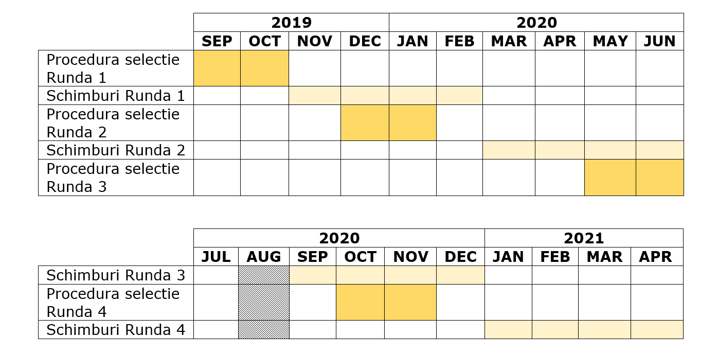 Apelul la candidaturi (Runda 2) este lansat de organizațiile partenere respective în diferite perioade pe parcursul fiecărui an (a se vedea tabelele orientative de mai jos). Informații despre apeluri și termenele exacte pot fi solicitate de la persoanele de contact naționale din fiecare țară parteneră (a se vedea, de asemenea, secțiunea V – contacte utile din Ghidul LawyerEx). În ceea ce privește procesul de aplicare, solicitanții trebuie să completeze formularul de solicitare a proiectului (a se vedea documentul 1 atașat) și să furnizeze informații despre țările preferate pentru schimb (3 preferințe), datele preferate, limbile vorbite și zonele de practică preferate. CV-ul lor (în limba engleză) trebuie, de asemenea, atașat la formularul de înscriere. Avocaților selectați pentru cea de a doua rundă de schimburi li se va oferi un loc de muncă în perioada martie – iunie 2020, ținând cont de preferințele lor și de disponibilitatea posturilor în instituțiile gazdă. Depunerea candidaturilor presupune ca persoanele interesate sunt de acord cu termenele și condițiile ELF privind protecția datelor personale.